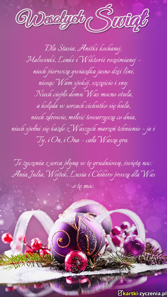 Ania, Julia, Wojtek, Lusia i Chihiro proszą dla Was o tę moc - Gotowa Kartka bożonarodzeniowa