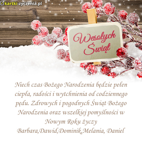 Barbara,Dawid,Dominik,Melania, Daniel - Gotowa Kartka bożonarodzeniowa