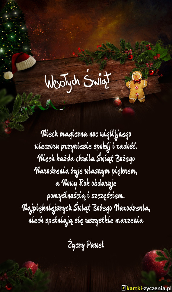 Niech czas Bożego Narodzenia będzie pełen ciepła, radości i wytchnienia od codziennego pędu. Zdrowych i pogodnych Świąt Bożego Narodzenia oraz wszelkiej pomyślności w Nowym Roku życzy