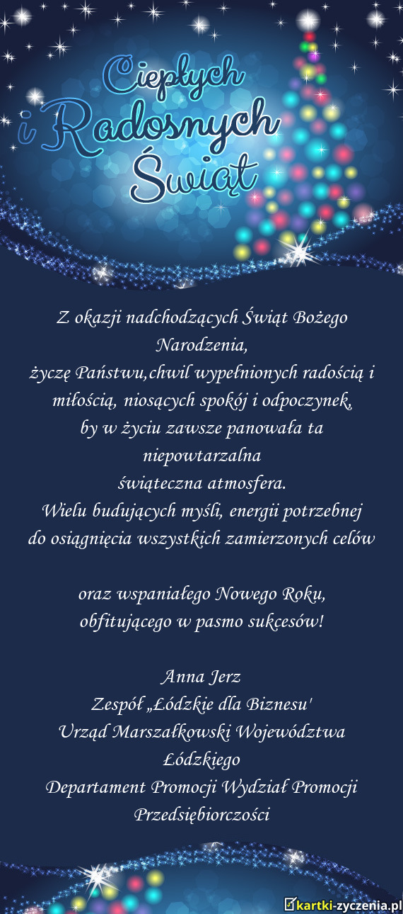 Szanowni Państwo, na najbliższy czas życzymy Państwu wiele radości, ciepła i pokoju oraz głębokiego doświadczenia bliskości, które będzie towarzyszyło Wam i Waszym Najbliższym