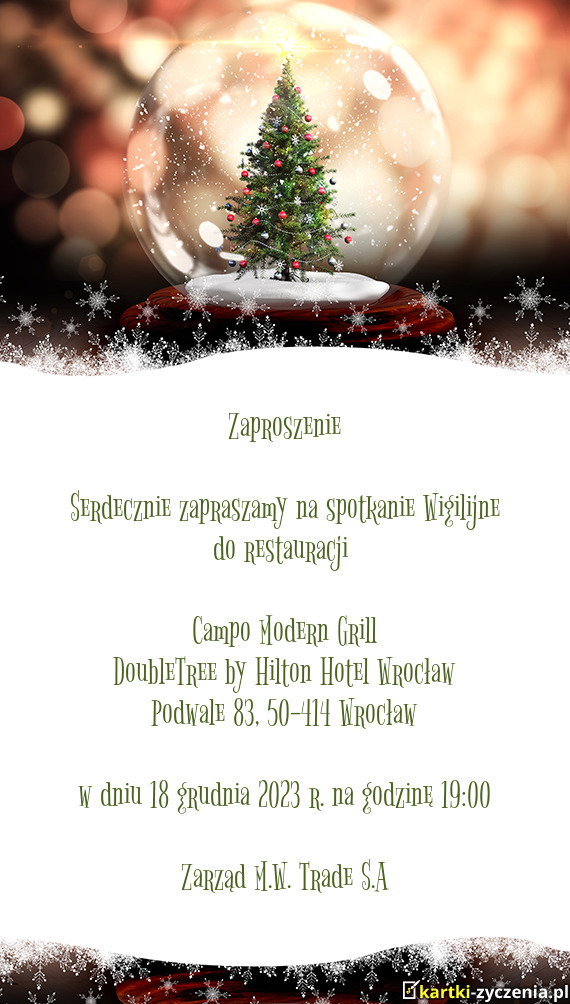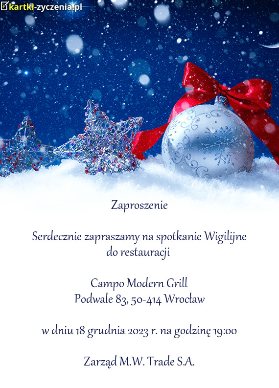 Serdecznie zapraszamy na spotkanie Wigilijne