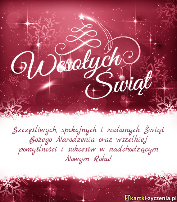 Szczęśliwych, spokojnych i radosnych Świąt Bożego Narodzenia oraz wszelkiej pomyślności i sukcesów w nadchodzącym Nowym Roku!