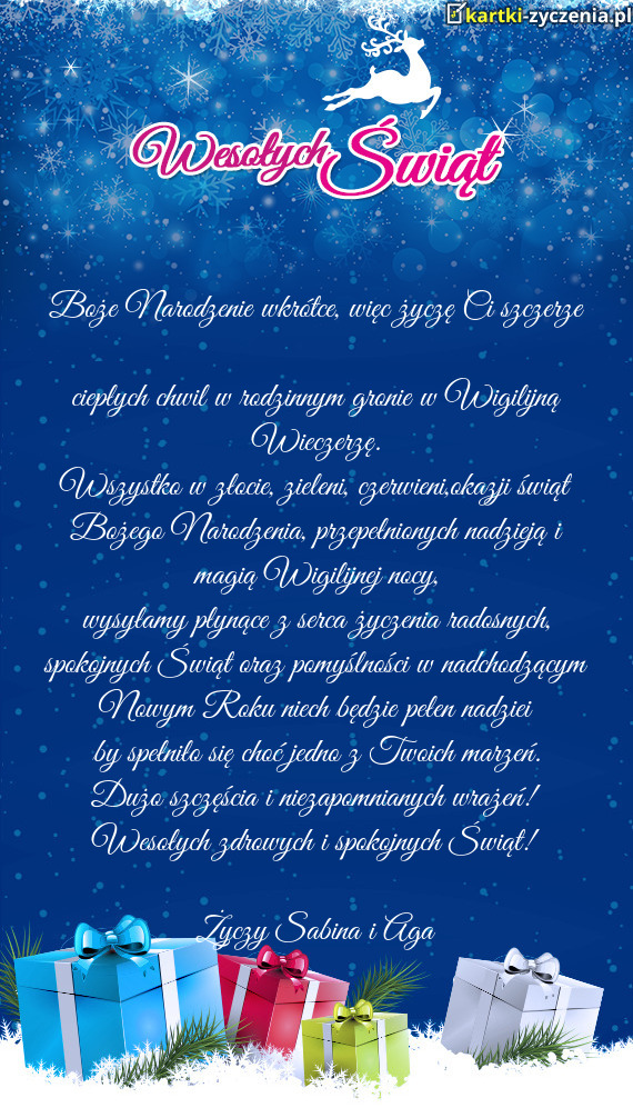 Boże Narodzenie wkrótce, więc życzę Ci szczerze