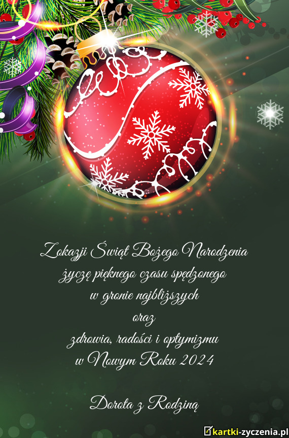 składam życzenia zdrowia, spokoju i rodzinnego ciepła. Niech upłyną bez pośpiechu i zmartwień, bez waśni i sporów, w atmosferze miłości, radości i wzajemnego zrozumienia.