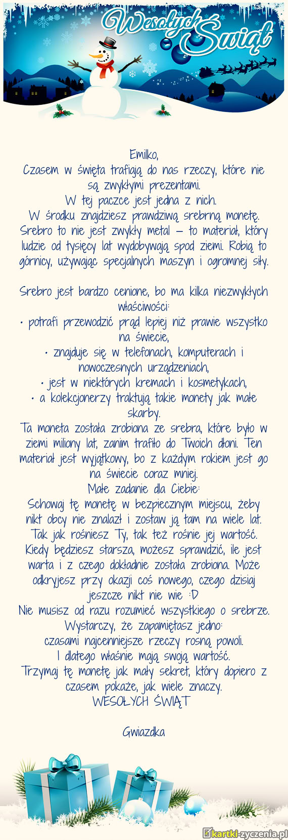 Czasem w święta trafiają do nas rzeczy, które nie są zwykłymi prezentami - Gotowa Kartka bożonarodzeniowa