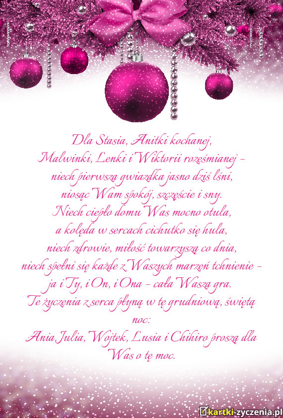 Dla Stasia, Anitki kochanej - Gotowa Kartka bożonarodzeniowa