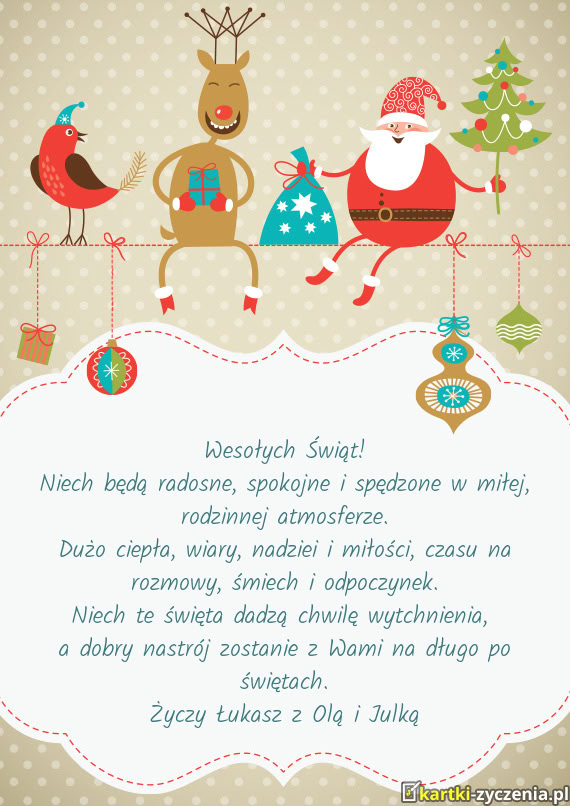 Dla wspaniałej Ali i Sebastiana dużego - Gotowa Kartka bożonarodzeniowa
