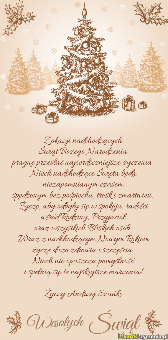 W cieple świątecznego domu niech bije moc serca rodziny, a w blasku choinki niech migocą iskry radości i wzajemnej miłości. Wszystkiego najlepszego z okazji świąt Bożego Narodzenia