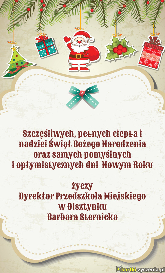 Dyrektor Przedszkola Miejskiego - Gotowa Kartka bożonarodzeniowa