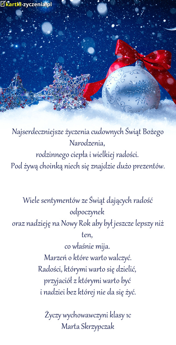 Dyrektor Szkoły Podstawowej - Gotowa Kartka bożonarodzeniowa