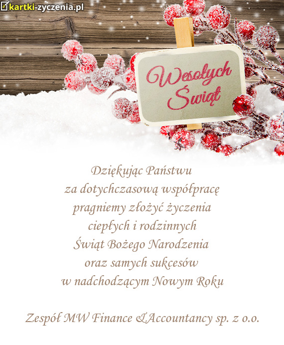 Dziękując Państwu - Gotowa Kartka bożonarodzeniowa
