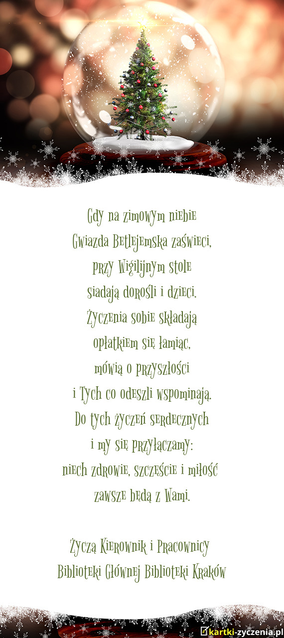 Dziękując za kolejny rok współpracy z nami, jednocześnie pragniemy życzyć Państwu ciepłych - Gotowa Kartka bożonarodzeniowa