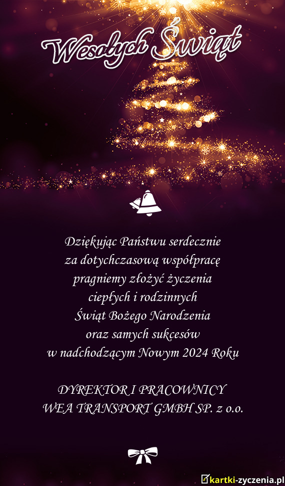 Dziękujemy za mijający rok i życzymy, aby ten Nowy obfitował w szczęśliwe chwile - Gotowa Kartka bożonarodzeniowa