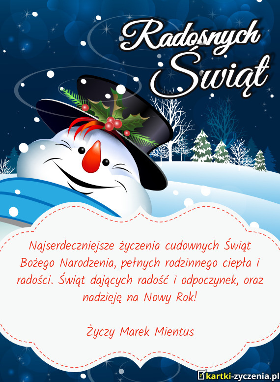 E mnie życzenia Ci złoży - Gotowa Kartka bożonarodzeniowa