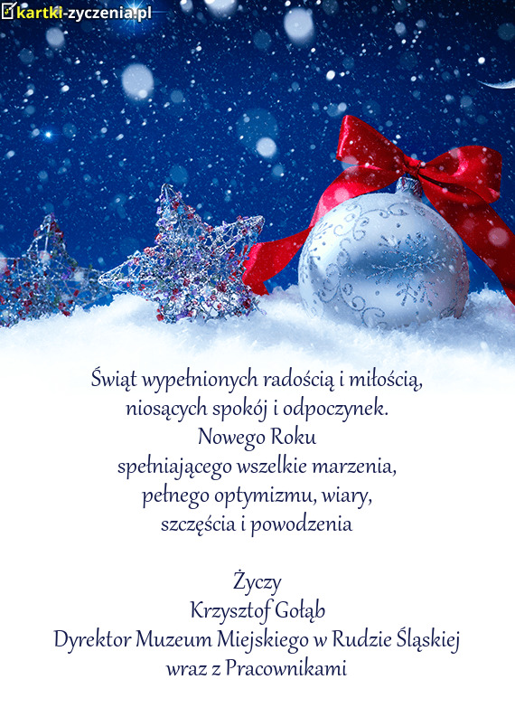 Spokojnych i radosnych Świąt Bożego Narodzenia, wszelkiej pomyślności w Nowym Roku oraz spełnienia w życiu osobistym i zawodowym