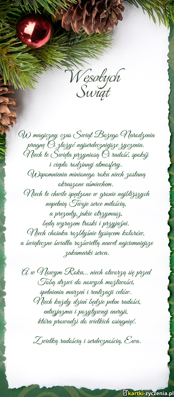 W magiczny czas Świąt Bożego Narodzenia pragnę Ci złożyć najserdeczniejsze życzenia.