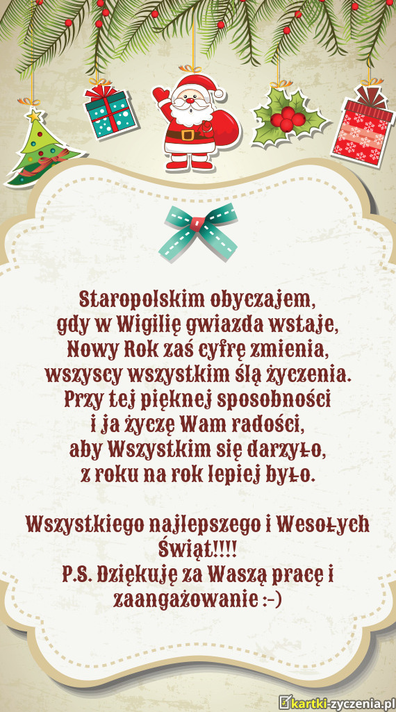 I dalszej owocnej współpracy - Gotowa Kartka bożonarodzeniowa