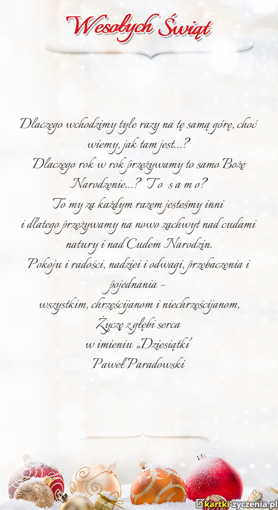 Dlaczego rok w rok przeżywamy to samo Boże Narodzenie…? T o s a m o?