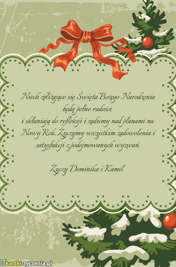 I skłaniają do refleksji i zadumy nad planami na Nowy Rok. Życzymy wszystkim zadowolenia i satysf - Gotowa Kartka bożonarodzeniowa