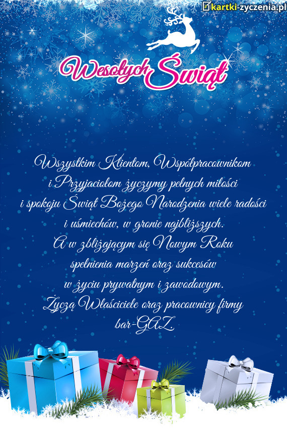 Życzą Właściciele oraz pracownicy firmy bar-GAZ.