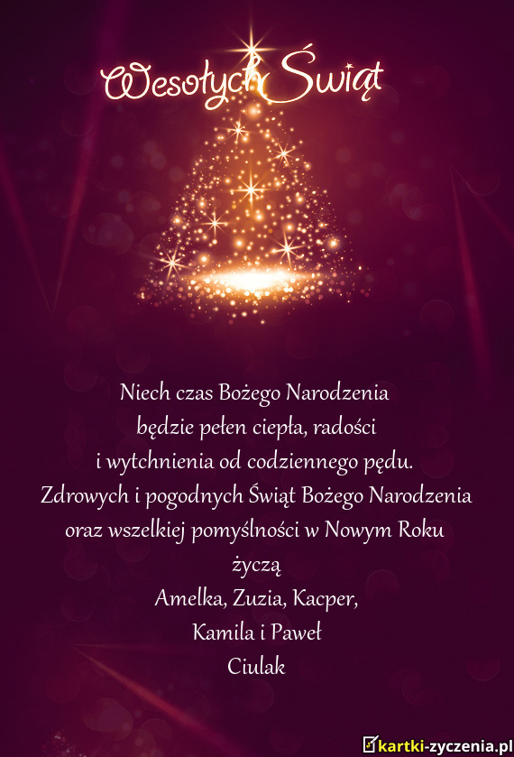 Zdrowych i pogodnych Świąt Bożego Narodzenia oraz wszelkiej pomyślności w Nowym Roku