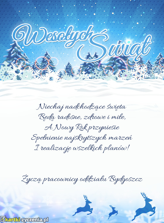 Spokojnych i radosnych świąt spędzonych w gronie najbliższych osób, a także zdrowia, szczęścia i wielkiej radości życzy: