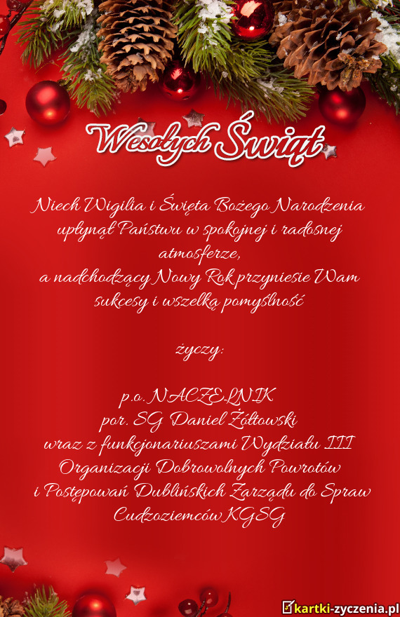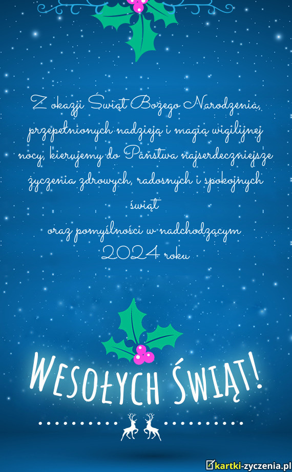 Kierujemy do Państwa najserdeczniejsze życzenia zdrowych - Gotowa Kartka bożonarodzeniowa