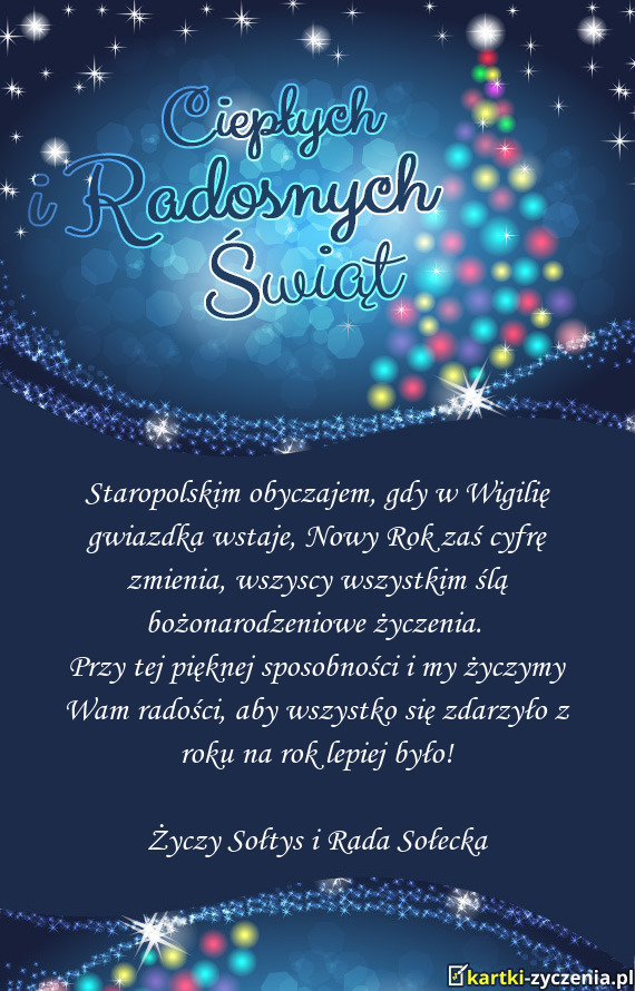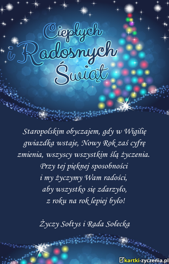 Staropolskim obyczajem, gdy w Wigilię gwiazdka wstaje, Nowy Rok zaś cyfrę zmienia, wszyscy wszystkim ślą bożonarodzeniowe życzenia.