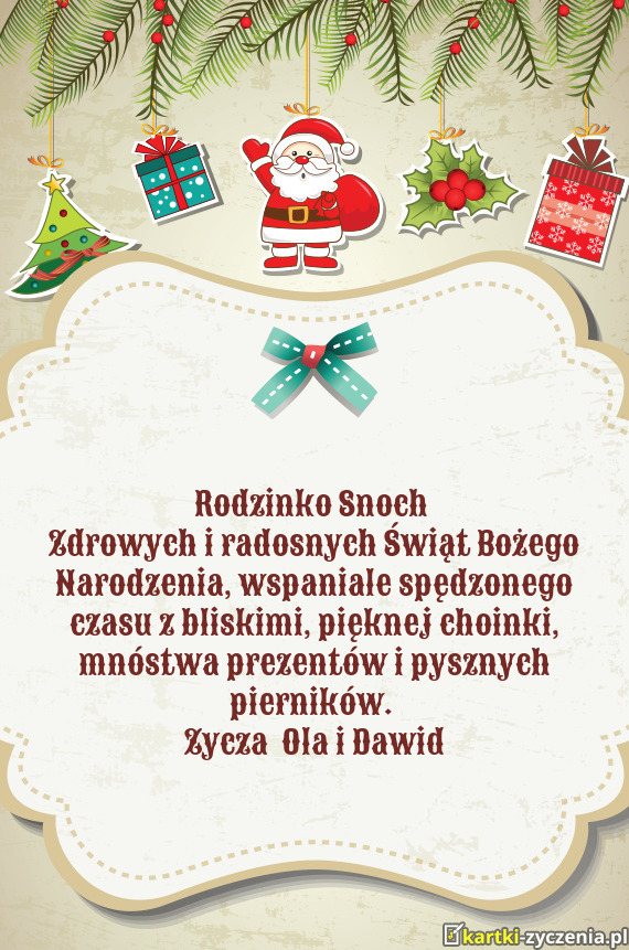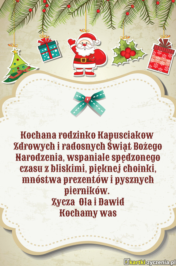 Kochana rodzinko Kapusciakow - Gotowa Kartka bożonarodzeniowa