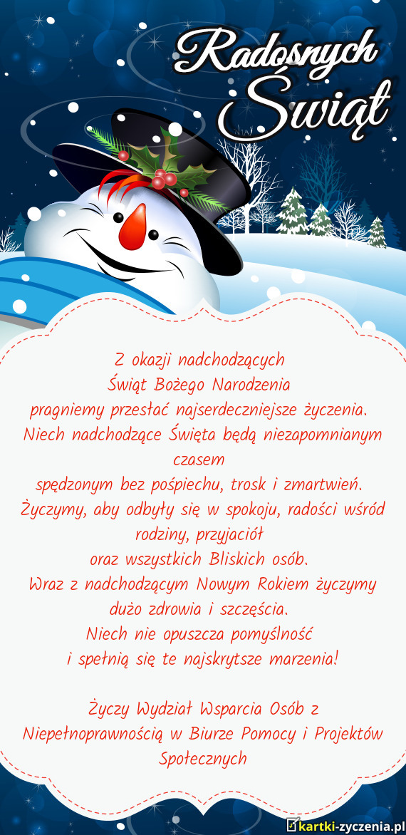 Świąt wypełnionych radością i miłością,