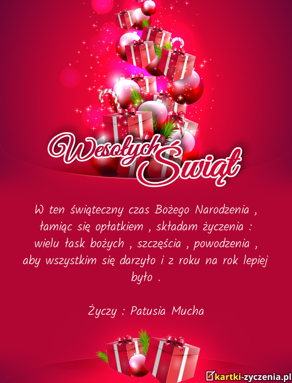 łamiąc się opłatkiem , składam życzenia - Gotowa Kartka bożonarodzeniowa