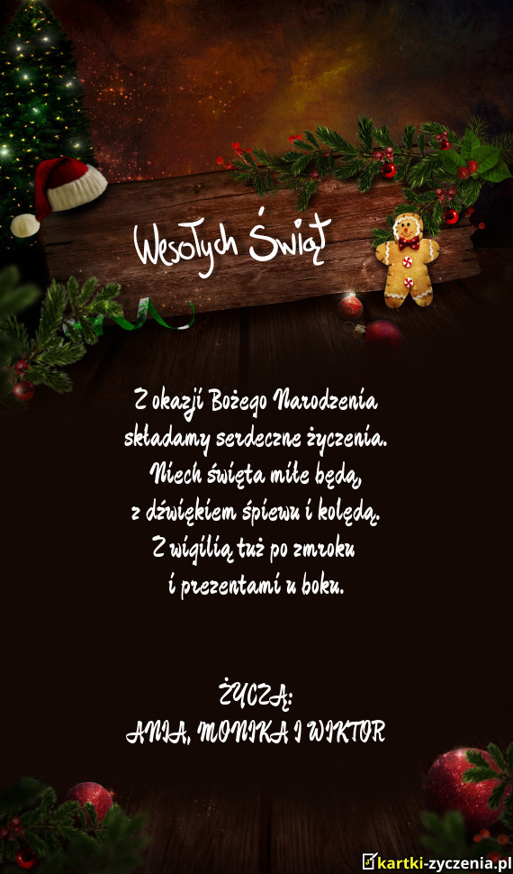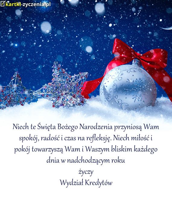 Niech te Święta Bożego Narodzenia przyniosą Wam spokój, radość i czas na refleksję. Niech miłość i pokój towarzyszą Wam i Waszym bliskim każdego dnia w nadchodzącym roku