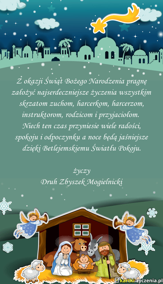 Z okazji Świąt Bożego Narodzenia pragnę założyć najserdeczniejsze życzenia wszystkim skrzatom zuchom, harcerkom, harcerzom, instruktorom, rodzicom i przyjaciołom.