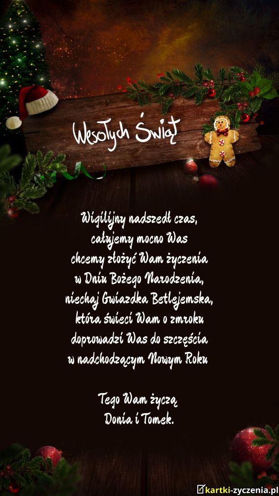 M życzą Donia i Tomek - Gotowa Kartka bożonarodzeniowa