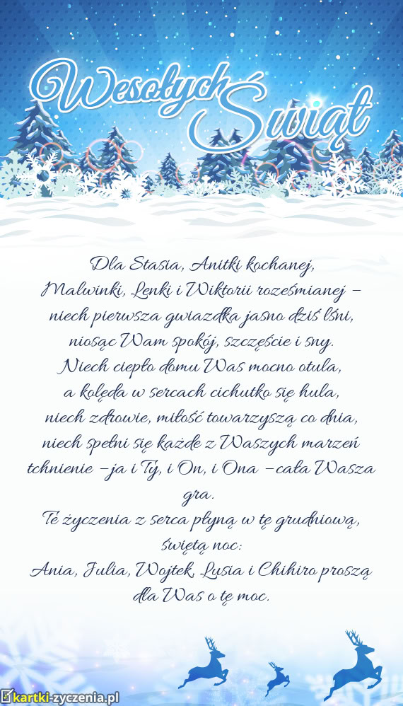 Malwinki, Lenki i Wiktorii roześmianej – - Gotowa Kartka bożonarodzeniowa
