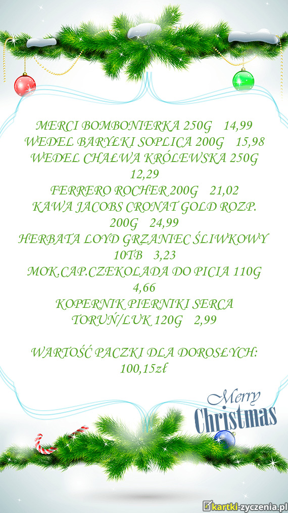 MERCI BOMBONIERKA 250G 14,99 - Gotowa Kartka bożonarodzeniowa