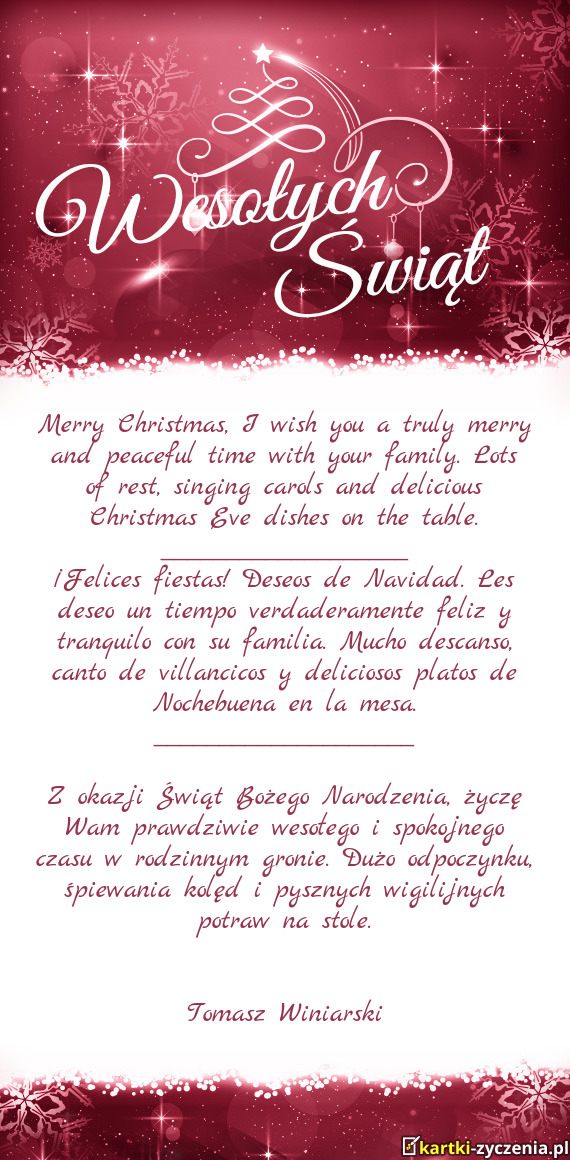 Merry Christmas, I wish you a truly merry and peaceful time with your family. Lots of rest, singing - Gotowa Kartka bożonarodzeniowa