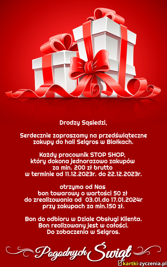 Miejsce Wiklinowa Zagroda Wólka - Gotowa Kartka bożonarodzeniowa