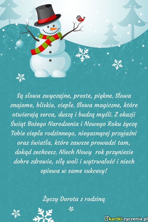 Mnóstwo ciepła oraz niezapomnianych chwil w gronie najbliższych - Gotowa Kartka bożonarodzeniowa
