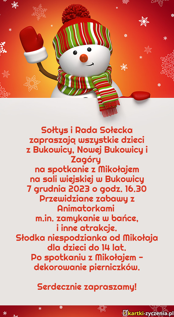 Na sali wiejskiej w Bukowicy - Gotowa Kartka bożonarodzeniowa