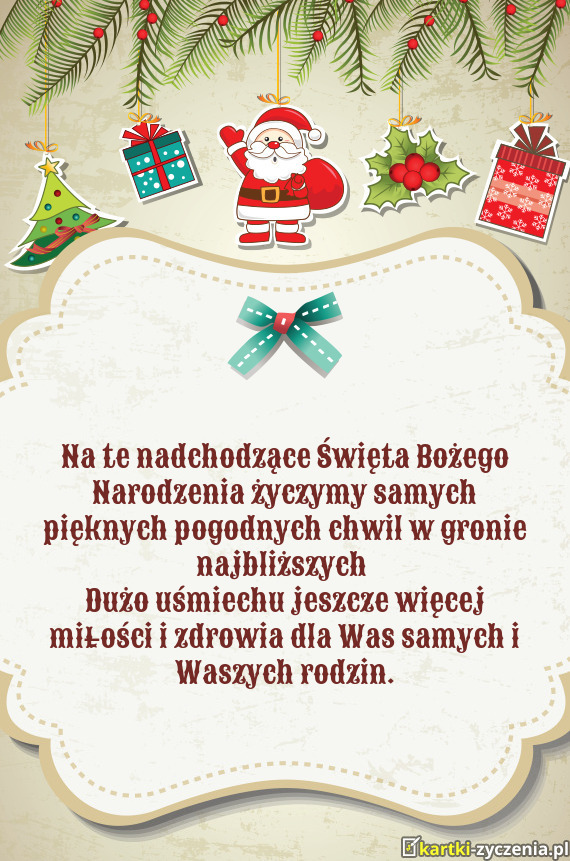 Na te nadchodzące Święta Bożego Narodzenia życzymy samych pięknych pogodnych chwil w gronie na - Gotowa Kartka bożonarodzeniowa