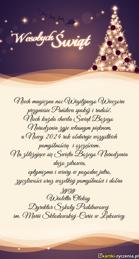 Niech magiczna noc Wigilijnego Wieczoru przyniesie Państwu spokój i radość.