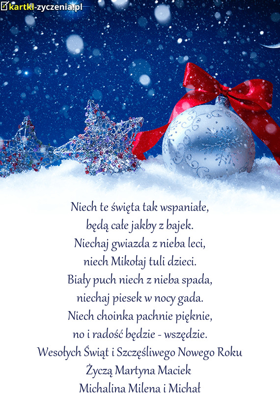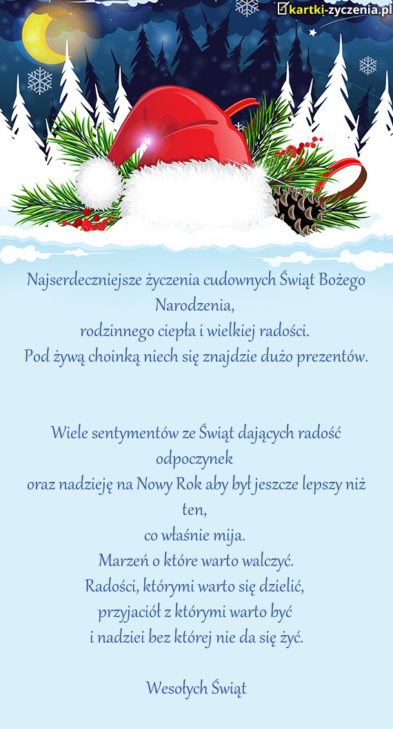 Najserdeczniejsze życzenia cudownych Świąt Bożego - Gotowa Kartka bożonarodzeniowa