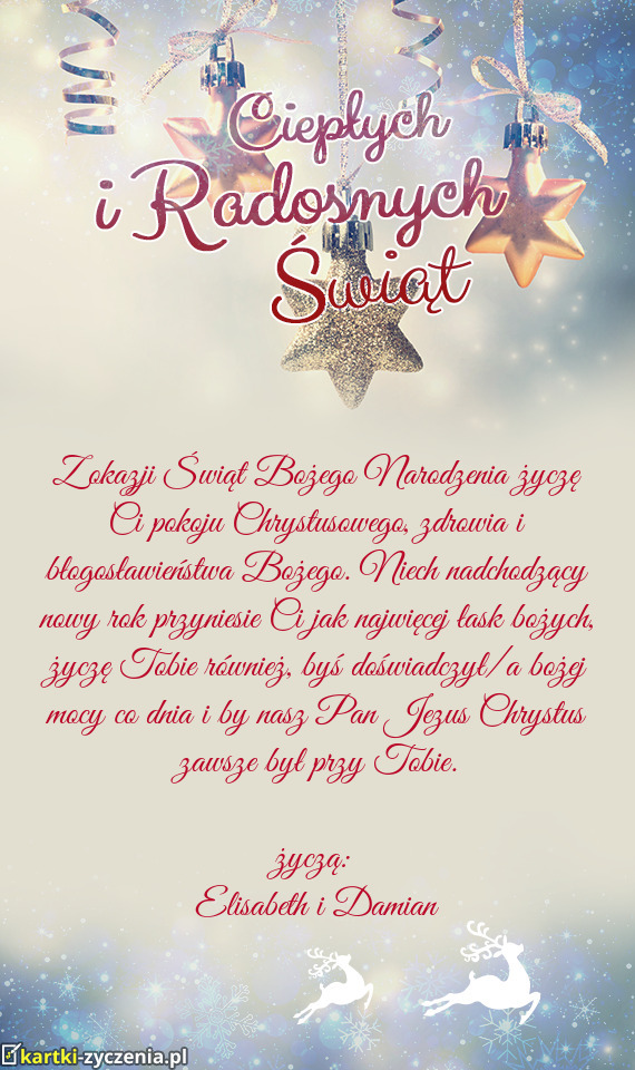 Najserdeczniejsze życzenia cudownych Świąt Bożego - Gotowa Kartka bożonarodzeniowa
