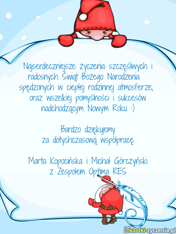 Najserdeczniejsze życzenia szczęśliwych i radosnych Świąt Bożego Narodzenia spędzonych w ciepłej rodzinnej atmosferze,pełnej miłości i zadumy