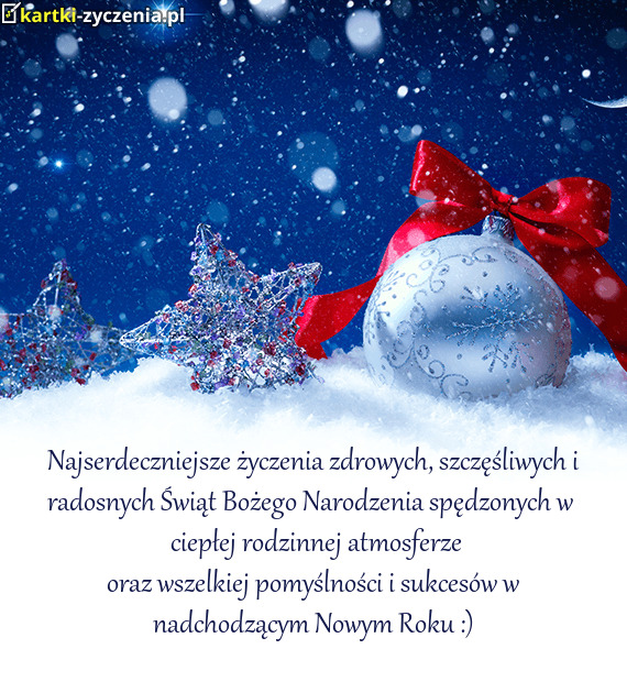 Najserdeczniejsze życzenia zdrowych, szczęśliwych i radosnych Świąt Bożego Narodzenia spędzon - Gotowa Kartka bożonarodzeniowa