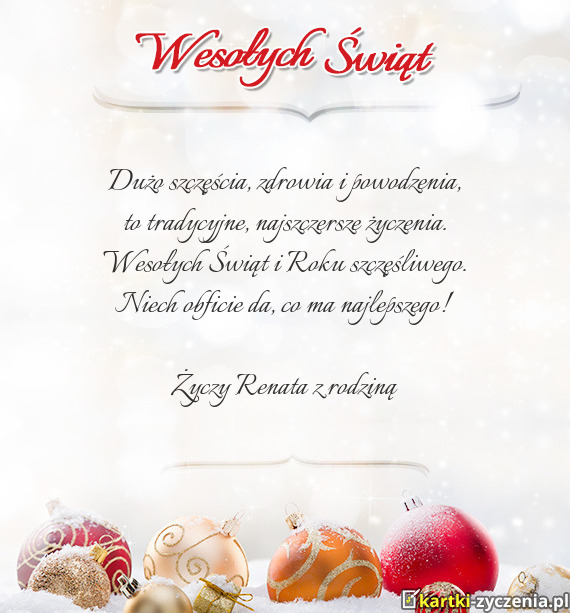 Najszczersze życzenia - Gotowa Kartka bożonarodzeniowa