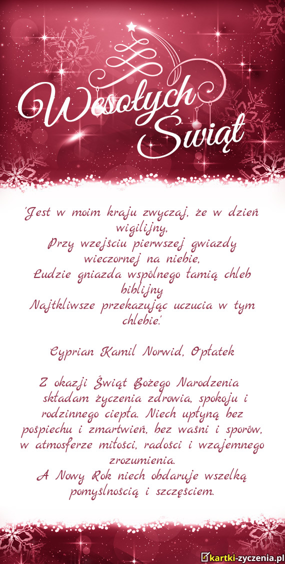 "Jest w moim kraju zwyczaj, że w dzień wigilijny,