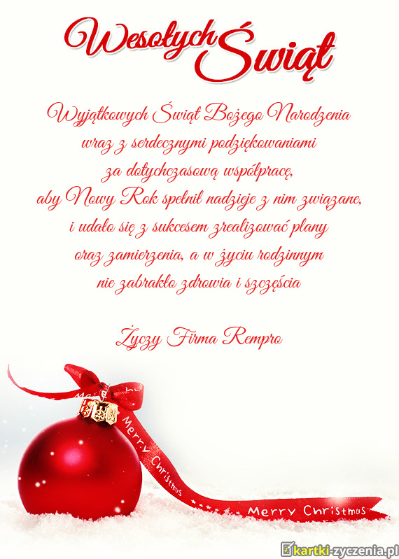 Nie zabrakło zdrowia i szczęścia - Gotowa Kartka bożonarodzeniowa