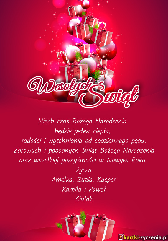 radości i wytchnienia od codziennego pędu. Zdrowych i pogodnych Świąt Bożego Narodzenia oraz wszelkiej pomyślności w Nowym Roku